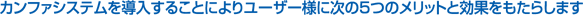カンファシステムを導入することでHACCP方式に対応するための大規模かつ高額な改修工事をしなくても済みます。また、カンファシステムを効率的に組むことによって、作業工程が減り、実質作業に集中でき経済効率が高くなります。 |